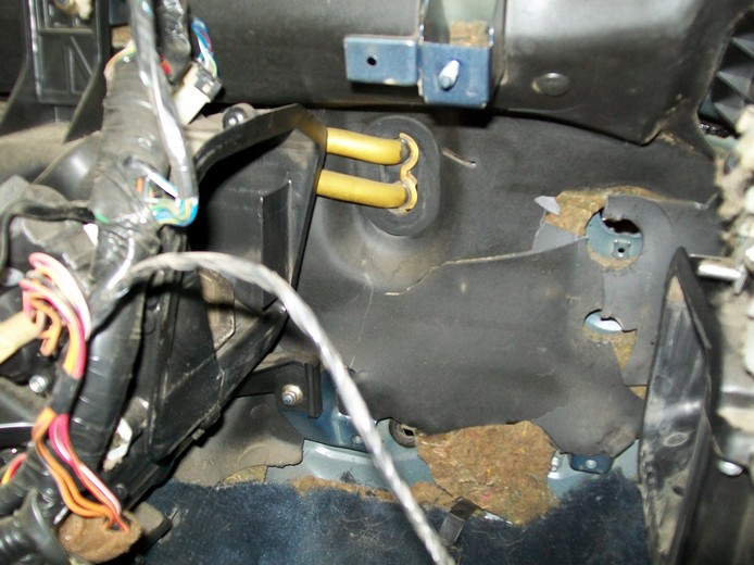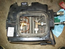 I was not sure how to get the evaporator box out. You can easily remove the 3 bolts holding it in once you remove the glove box and metal piece. I disconnected the lines at the firewall but it did not want to come out. So I removed the dash. I wanted to clean all the vents anyway. After removing the ruber seals in the engine side the box comes out very easily. Pop off the metal clips and the evap slides out. Hidden under the foam is 2 screws holding the sensor.