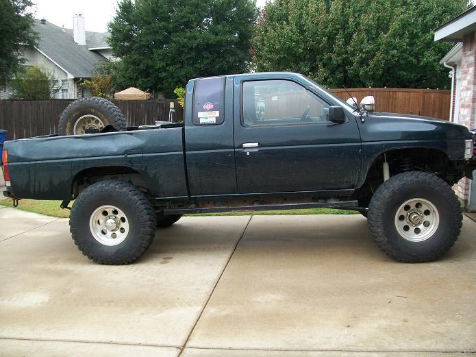 pads. The d22 (Frontier 1998-2004) Has 33 spline axles so does the R50 (96-2004) pathfinder and WD22 Xterra. I have never tried pressing the backing plate off the putting on the 33 spline axles yet. I read it can be done. I swap axles when I install the discs in the below examples. This is the d21 stock setup. Note this has aftermarket 4" lift springs, upper spring plate and a U bolt flip. Just unbolt 4 17mm nuts and axle slides out, very easy. Disconnect brake line and p brake cable. I removed the dust shields since they where trashed. Dont need them anyway. Dont want dirt and rocks stuck in there. The shields are welded on so I used a cut off wheel and grinder. I just removed all the flimsy light gauge steel. The caliper bracket is part of the backing plate. I did replace one of the studs. I think there is a slight difference in length. There is a procedure in the FSM to shim the end play. Or you can grind 20th off the disc axle. I think its a hair longer. I had to relocate the hard line connection. I did not have the WD21 axle hardlines. I just cut it off and welded it up top. Hose still allows caliper to swing on pin. Another option is to swap the backing plates. You will need a press. See more details below. Backing plate and caliper mount with the shoes removed. Drives great. Much better I think. Especially back wards. I Install these Super heavy duty 4x4 brake pads. The ones that came with the used parts were paper thin. Got these from tirerack.com 87-95 Pathfinder rear brake parts are all the same. Rotors, pads calipers etc. Parking Brake cable modifications. Pathy (WD21) on top, Truck (D21) on bottom. Note the pathy handle dumps the cable out a SECOND hole in the rear seat area. UPDATE: I converted to a Pathfinder handle. I had to make a oblong shape hole in floor but it works AWESOME! The cable was easier to lengthen also. I reused part of the drum brake cable and 2 stainless u bolts. I first moved the handle over towards driver seat 1.5" for cup holder room. This is not required for disc brakes. Remove right seat, ECU, seat belt and fold over carpet. Bolt in the pathfinder handle assembly and mark the floor for the holes. Drill 2 holes and connect with airsaw. Since the pathfinder has 2 nuts welded to the bottom of floor I had to weld to bolts to plate. Then add 2 nuts from bottom. Use some gasket sealer to seal up the plate. Now the pathfinder wheel base is 104 compared to my king cab 116. So I made an extension using old cable parts. Updated: 1/5/2011: I decided to make a steel tube extension instead of the cable to cable mess. Works much better, I used the OEM pathy cables at the axles. I had to add a cross member above the Y to keep the cables above the driveshaft under flex. Its a 1.5 tube 1/8 thick about 23" long. With a 3x3 3/16 flat tab. Its only welded to drivers side now. Later will attach to future 3/16 gas tank skid plate. I modified the OEM skid plate for clearance. If You have a lift block and or a Body lift the cross member may not be needed. The cable can be pulled upwards via a bracket instead of using the cross member. I added a small bracket to keep the cable off the driveshaft under compression. It really made the parking brake work better. Update this bracket is no longer needed since the new cable is shorter and higher. WD21 Pathfinders are super easy to convert. R50 pathfinders have 33 spline axles and will need the backing plates swapped. The axle lengths are different so will have to press the backing plate on. The backing plate is the caliper mount. Just swap out the hard lines and plug in the axles. Its that easy. W/D22 Xterra and Frontiers are a little more involved You need to swap the backing plate because the backing plate is the caliper mount. Here is a drum 33 spline axle tear down The ABS is easy to pop off. Do NOT cut it off.