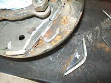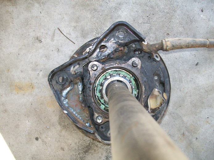 I noticed I bent both bolts the hold the calipers on. So I decided to rotate the calipers up out of the way. Also the parking bake cables exit from bottom. This is not ideal for rocks. This mod rotates the caliper mounts and moves the parking cable to top. By swapping sides. After The axles/disc brake parts you want are from a 87-95 WD21 Pathfinder. Optional on autos only. These are all 31 spline axle shafts. First step is remove axle from housing. Cut off the tab flush. I had to remove some backing plate for clearance. Also added some flat stock to rebuild caliper mount. I put a piece of steel under the caliper bracket and a piece on top to holder while tack welding together. I used my h233 bearing press tool to hold this together. All welded up. I had to drill a new hole to put the brake shoes on. Now Cable and Caliper are up higher.