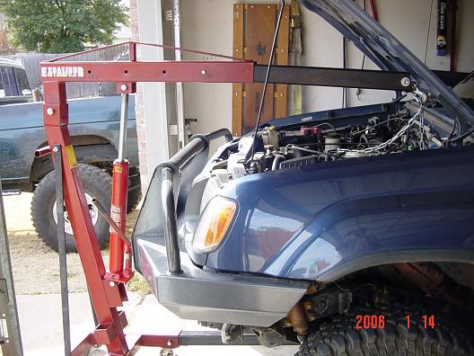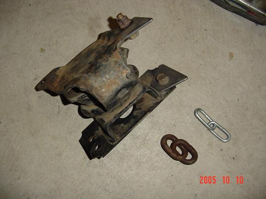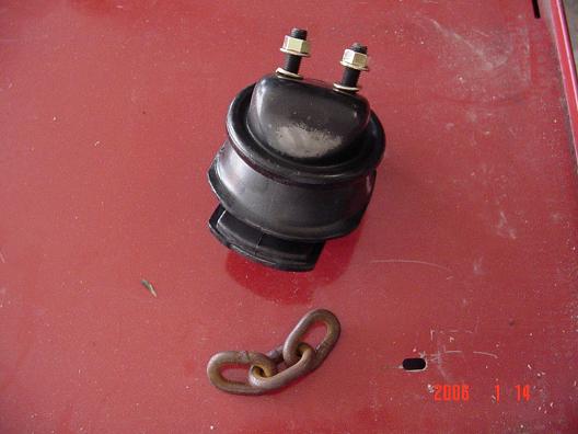I almost ripped my motor mount te other day on a hill climb. So I decided to prevent it from breaking. I have heard of numerous trucks ripping the driver side. So I did this. This is an Xterra/Frontier mount mod. This is a new aftermarket replacement left/right motor mount. A piece of heavy chain is used to reinforce the mount. This mounts are failing on Xterras and Frontiers under heavy off road use. I welded a piece of steel leaving a little slack in the chain. Before and after We used an engine hoist to rais engine slightly since this Xterra has tons of steel skids all over the bottom. Getting to the lower nuts is tricky on a 4wd. The bolts are right above the diff in a recess in the frame. Sockets dont really fit since the studs are so long. This is the best wrench for the job. Yes I reinforced the original as a spare. Hope these hold up. Currently have three Nissans testing this idea on the trails.