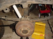 OEM Disc brakes from a WD21 Nissan Pathfinder 1987-1995 installed onto a D21 truck that had drum brakes. The hardest part of this conversion is the parking brake cable. Click on small pix for larger versions. I am still using the disc/drum Master cylinders on truck and pathfinder. They work great. The