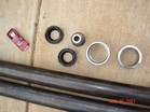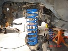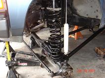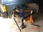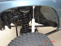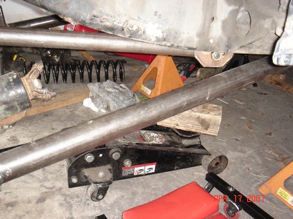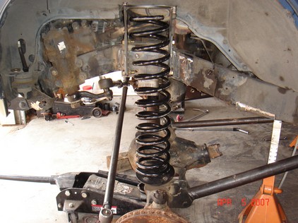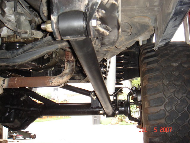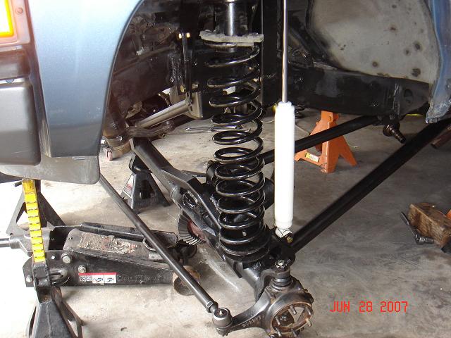 Johnny joints are 7 piece assembly. Very easy to assemble. Using these in all ends of the links and one end of the track bar. I had to use a press to get the clips in. Bolted on the lower link and still have pathy on seperate jack stands from axle. The coil is just for mock up. Actual coils are 7" longer. Made the upper link the similar to lower except with 1.5 tube.