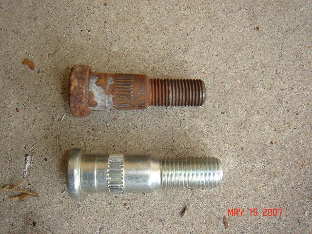 To install the rotors, they are connected to hub via wheel studs. Install rear bearing, wheel seal, rotor then new wheel studs. I upgraded to 12mm studs. Update. I noticed these studs do not fit the rotor correctly. They are too small for the rotor. I put 7/16-20 back in. Still looking for a 12mm that will fit. |