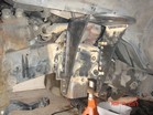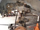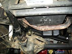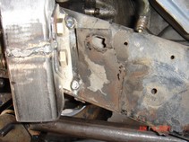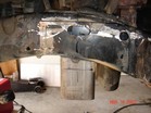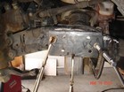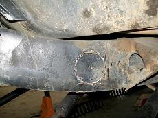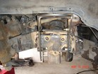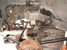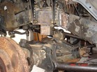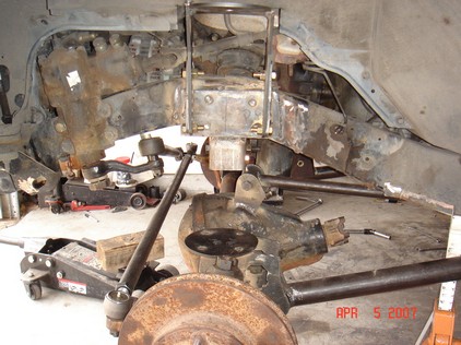 I started stripping the frame down. Removed tires, calipers, sway bar, steering (all but steering box) hubs, rotors, UCAs, tbars, shocks, cv axles, 3rd member, LCAs, cross member and rubber brake lines. Cut off all IFS brackets. Sawzall worked best. But also used cut off wheel in a grinder. |