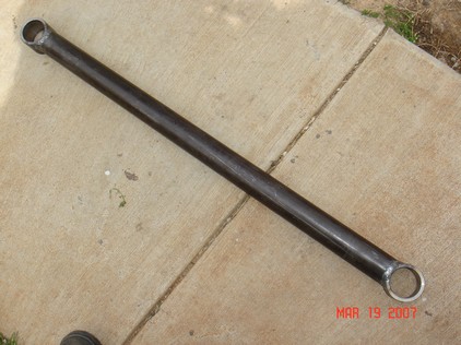 | 2" .250 wall 36" long lower links. Cut to length then weld on the sleeve. So big a Titan fits inside. 32" inside cut to cut. |