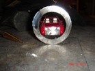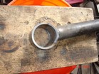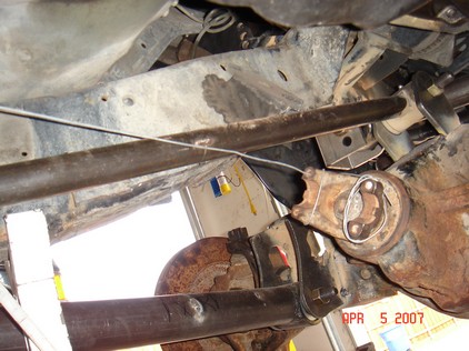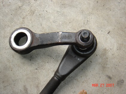 This is the stock 92 and older pitman. Reamed for the es2027L. See the DOM SAS page for more pix. I cut a 25" drag link and a 41" tie rod. I tapped the ends with right and left hand threads 7/8 18TPI. |